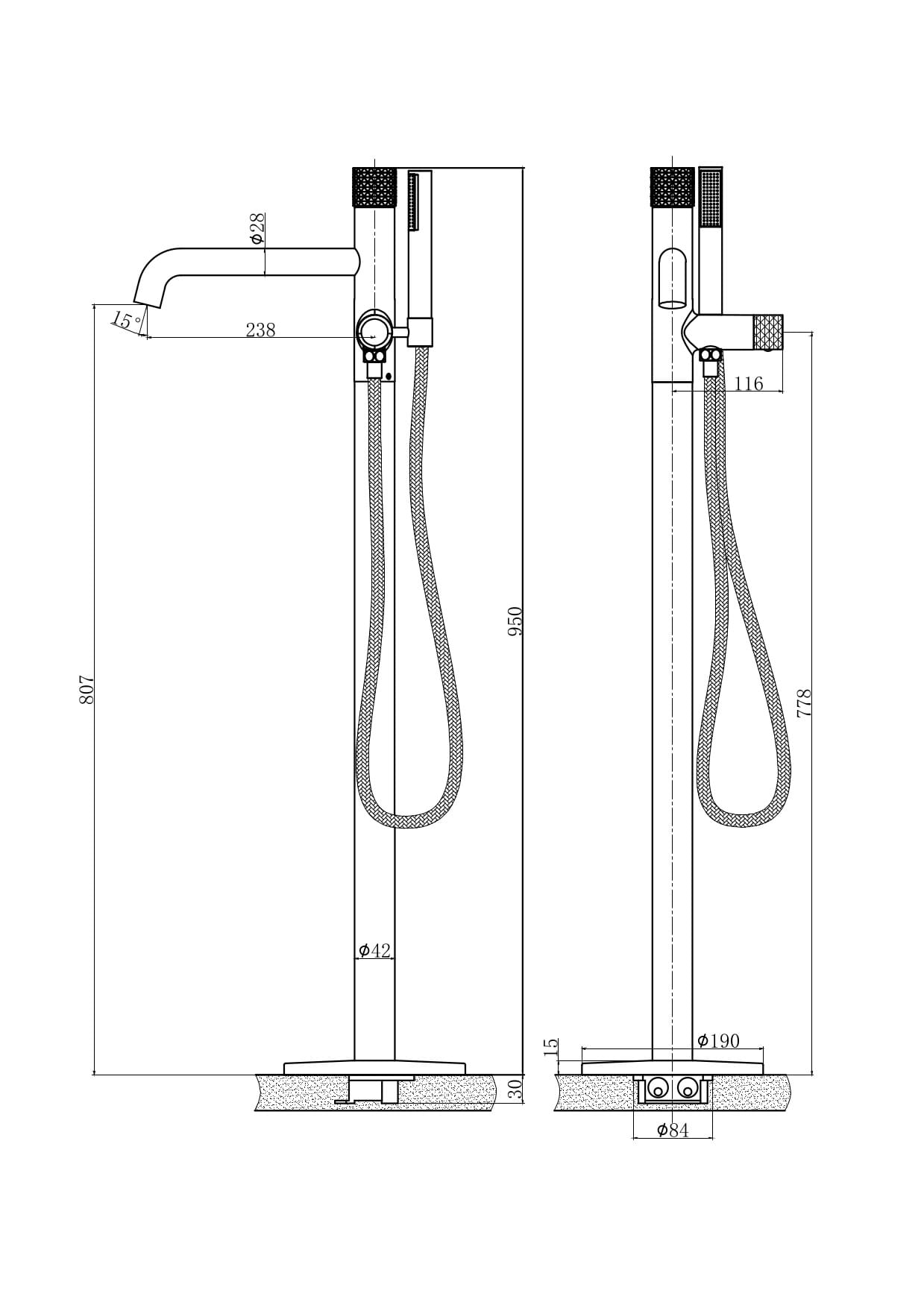 BATERIA WANNOWA WOLNOSTOJĄCA OVE BLACK GOLD