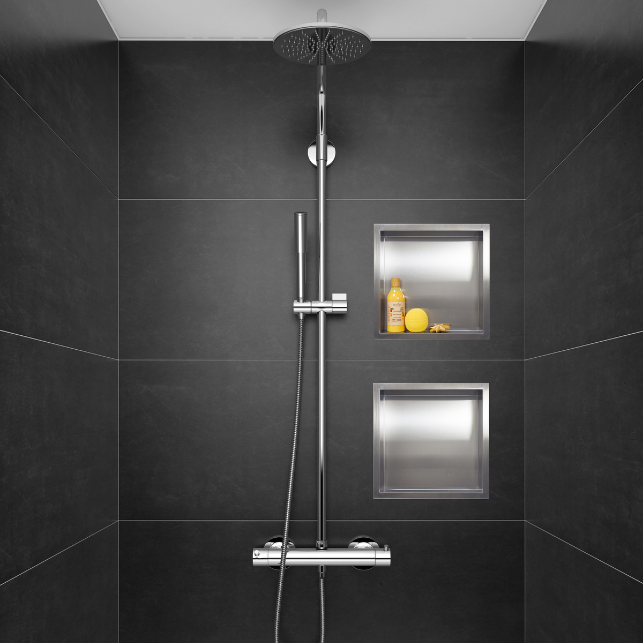- Wpuszczane w ścianę – Nie zabierają miejsca w kabinie