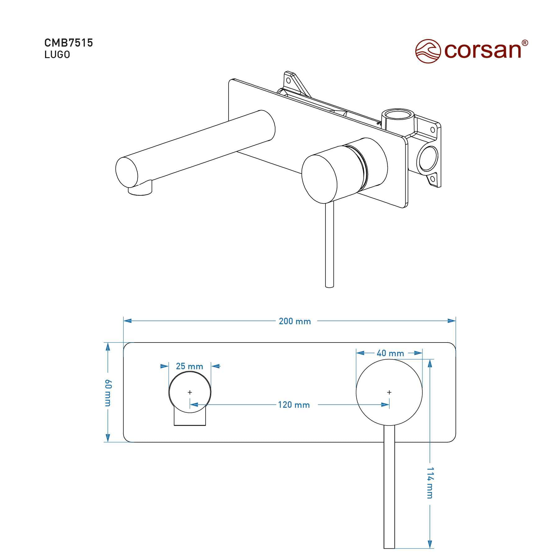 Bateria umywalkowa podtynkowa Corsan CMB7515CH Lugo chromowana z wylewką