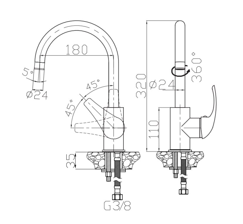 Bateria zlewozmywakowa stojąca LUX