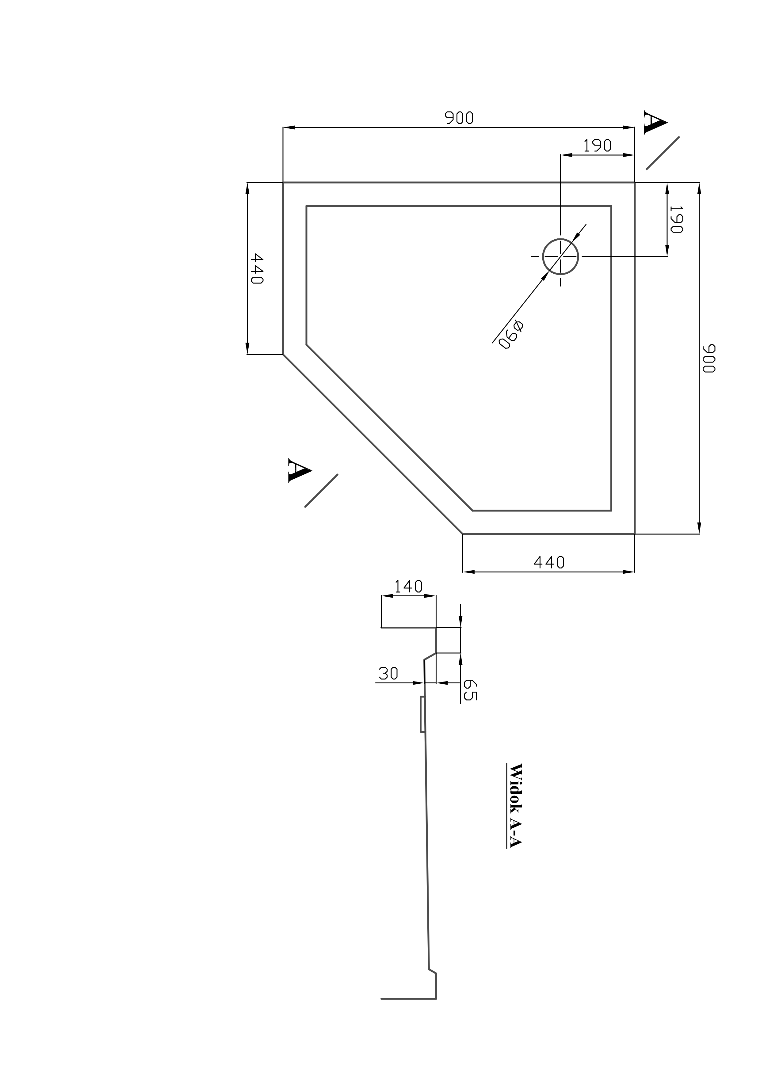 Brodzik pentagonalny 90x90x14 cm kompaktowy