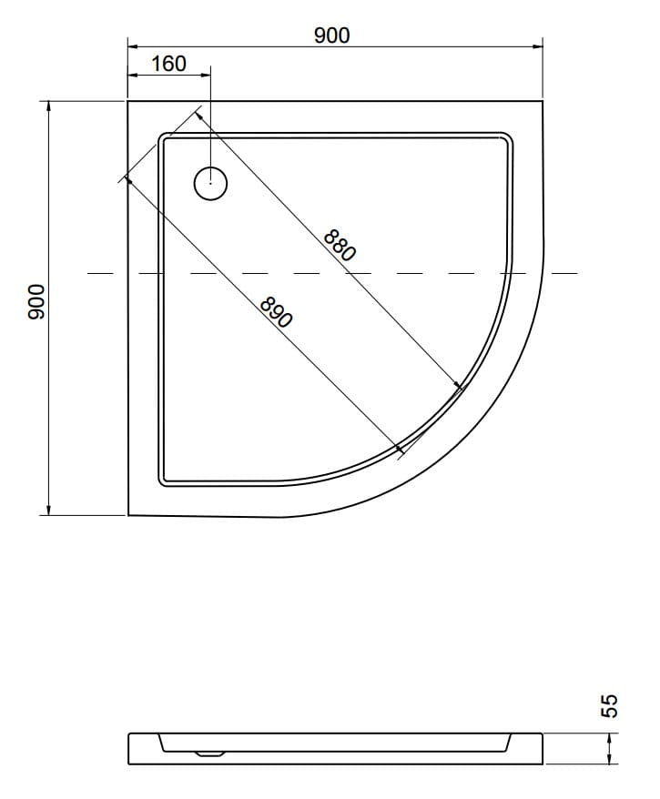 Brodzik półokrągły 80x80 ARON głebokość 3 cm
