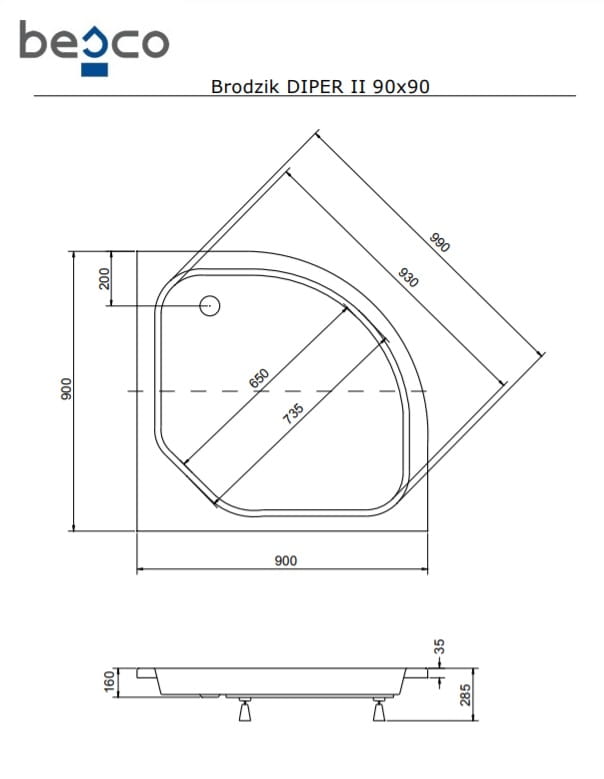 Brodzik półokrągły 90x90 Diper II z obudową