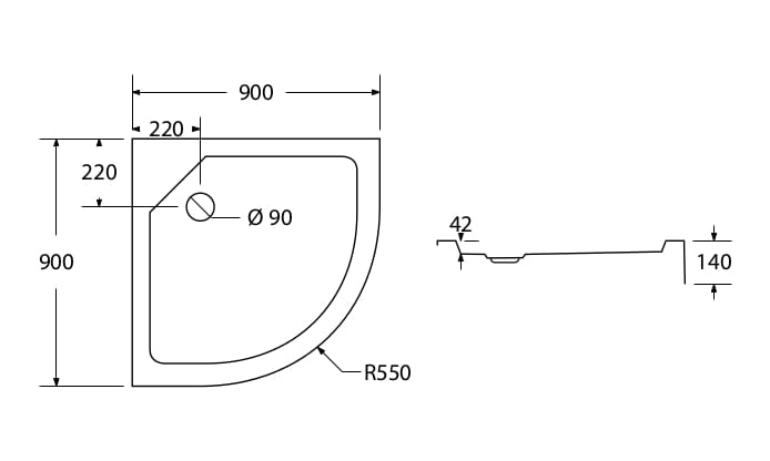 Brodzik półokrągły 90x90 głebokość 4 cm