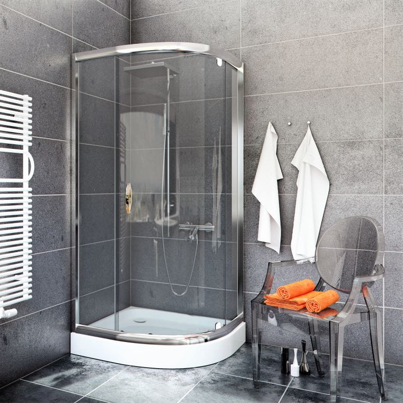 Kabina prysznicowa 80x80 szkło transparentne, bezbarwne, półokrągła, jednoskrzydłowa z POLSKIM brodzikiem + BK501RT+