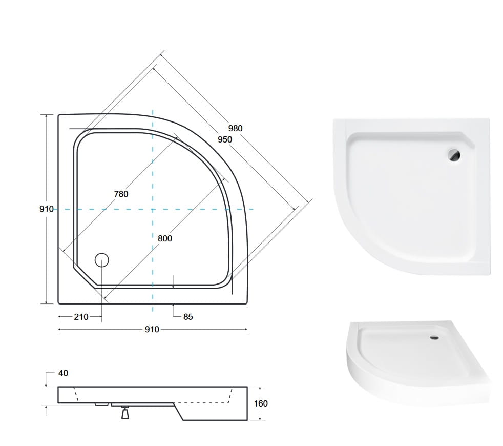 | Typ kabiny: | półokrągła, z 1 skrzydłem drzwiowym |