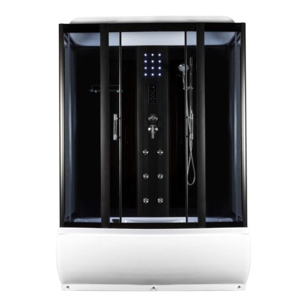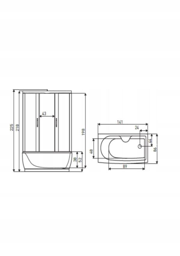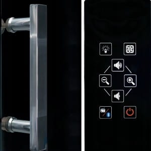 - Kabina wyposażona jest w dotykowy panel sterujący, wentylator, oświetlenie ledowe i halogenowe, półkę szklaną, radio, bluetooth