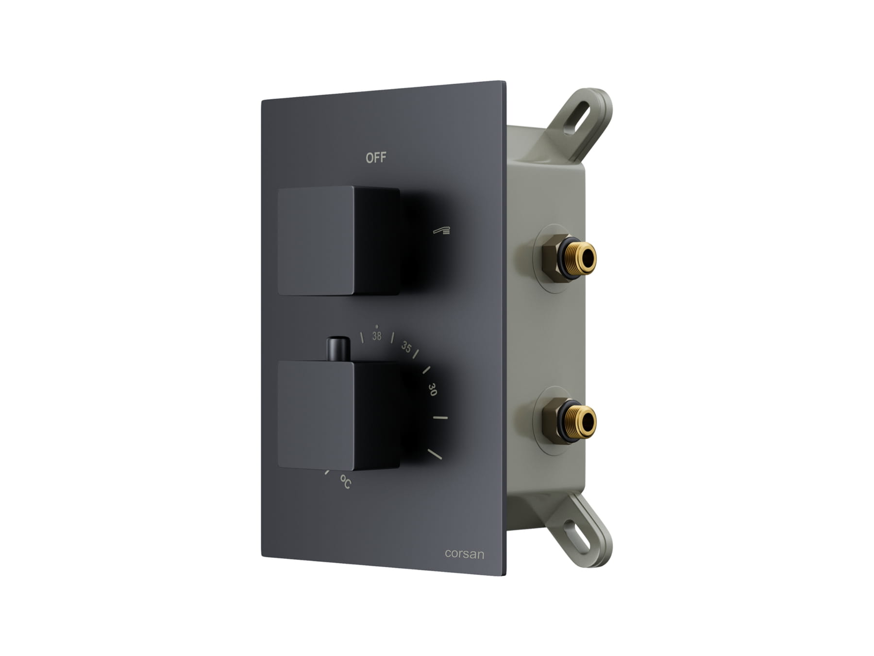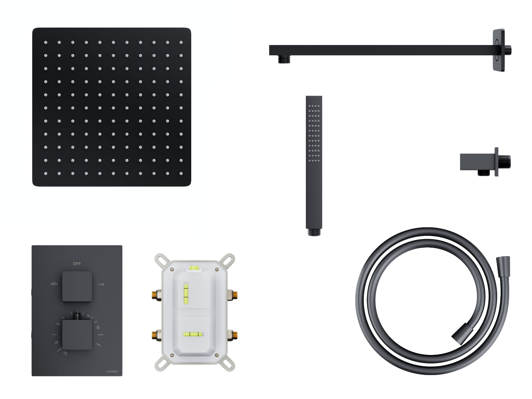 Natryskowy czarny zestaw prysznicowy Corsan ZA25TBL kwadrat termostat