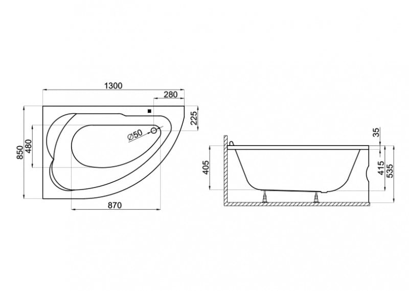 Obudowa wanny POLIMAT STANDARD 130x85 LEWA/PRAWA