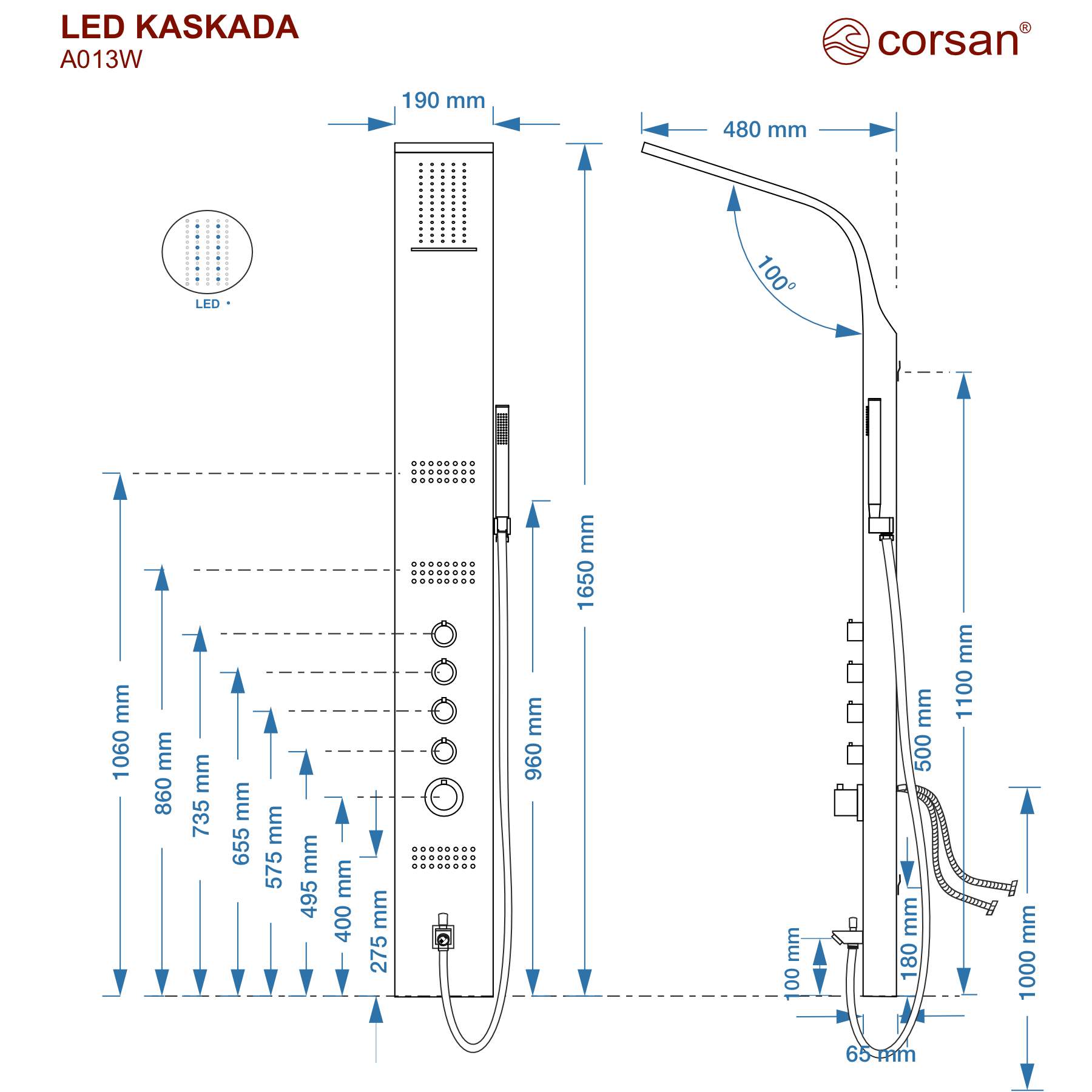 Panel prysznicowy Corsan KASKADA Mieszacz Biały Wylewka