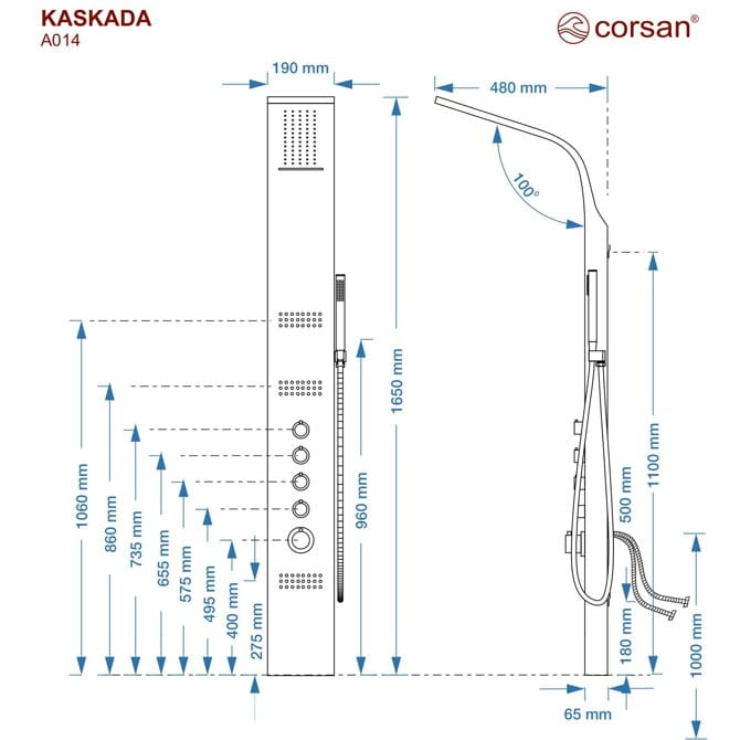 Panel prysznicowy Corsan KASKADA Termostat Biały