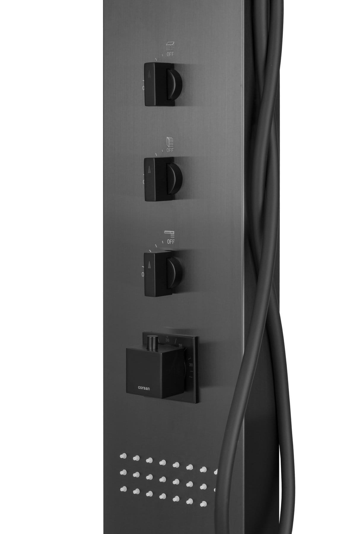 Panel prysznicowy Corsan Neo S060 Termostat Czarna stal Deszczownica LED