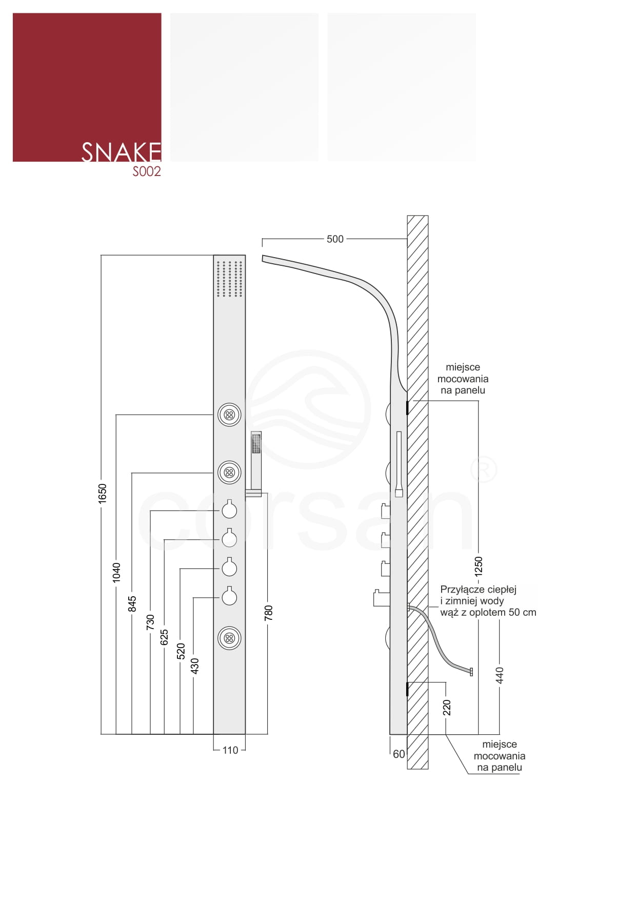 PANEL PRYSZNICOWY SNAKE TERMOSTAT