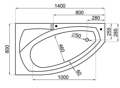 Wanna asymetryczna narożna FRIDA 140x80 cm LEWA