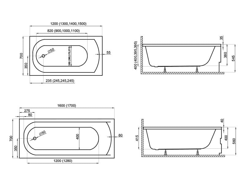 Wanna prostokątna POLIMAT CLASSIC 170x70 + stelaż + nóżki
