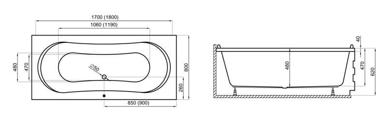 Wanna prostokątna LONG 180x80 cm Polimat