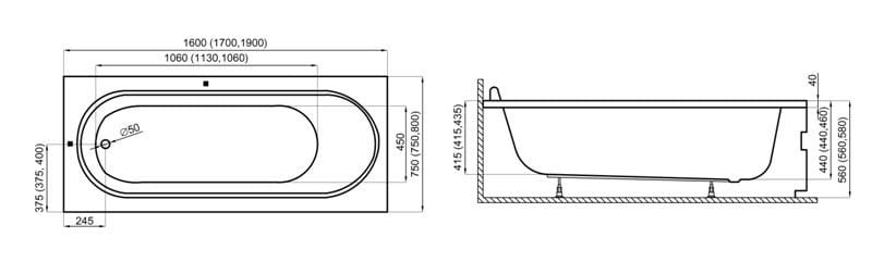 Wanna prostokątna MEDIUM 170x75 cm Polimat