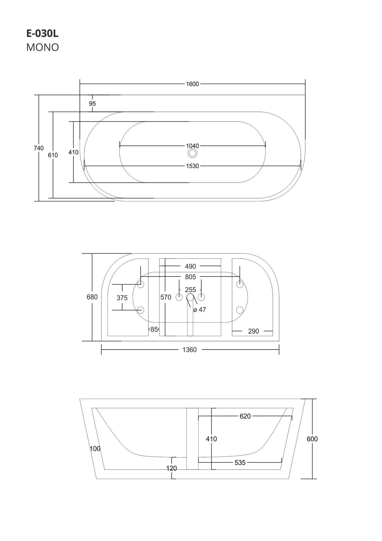 Długość wanny: 160 cm