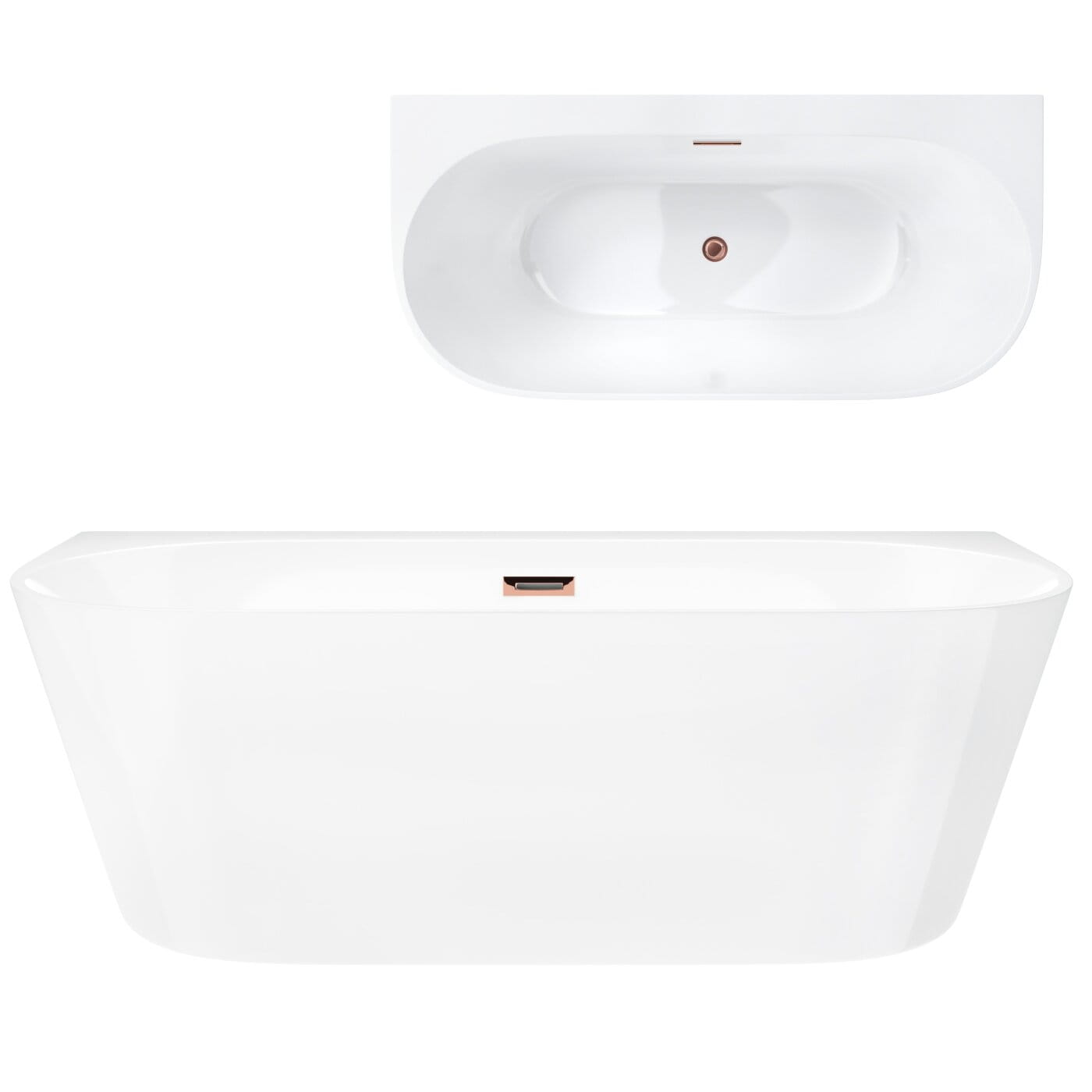 Wanna przyścienna wolnostojąca Corsan MONO 170 x 80 cm z szeroką krawędzią Korek klik-klak Miedziany / Różowe Złoto