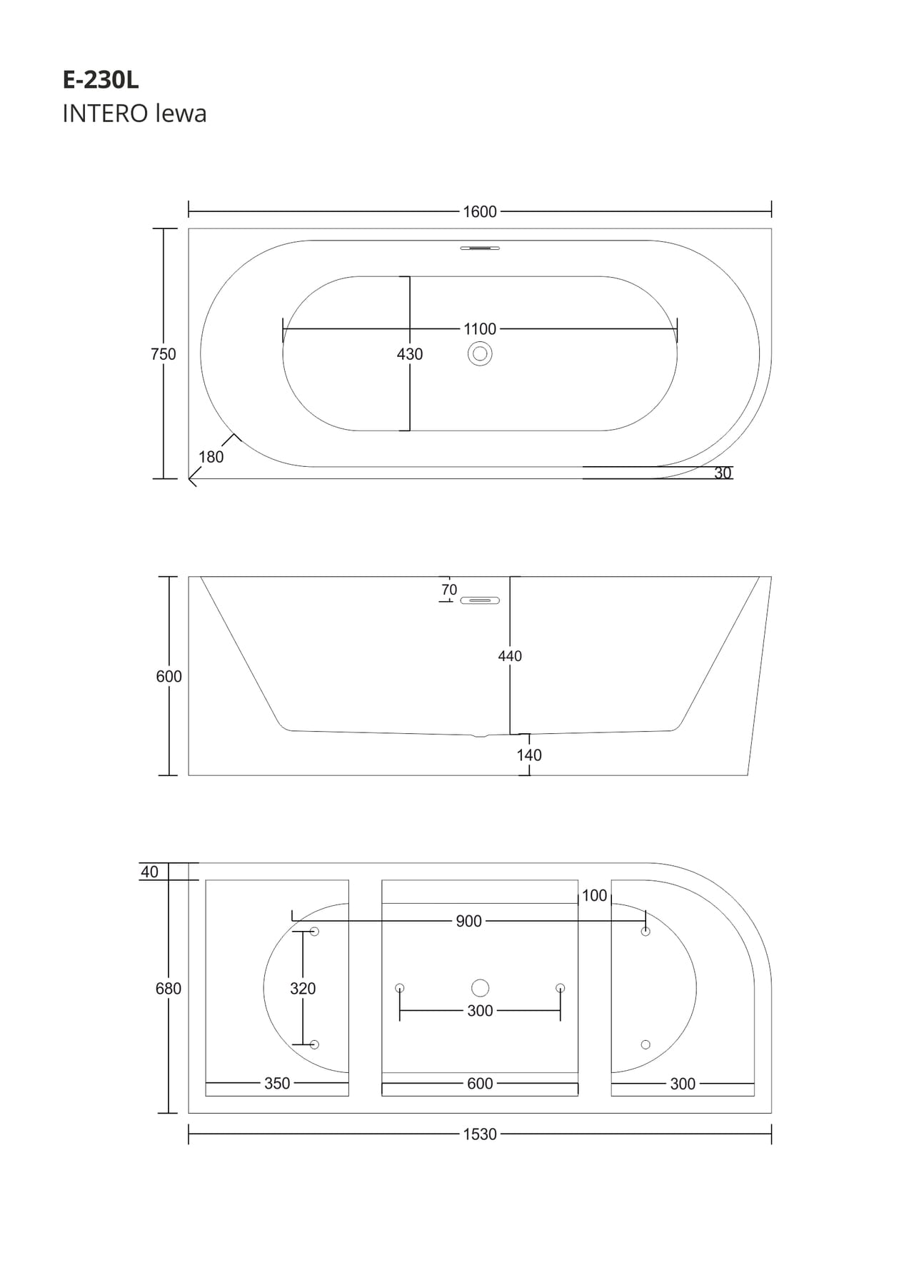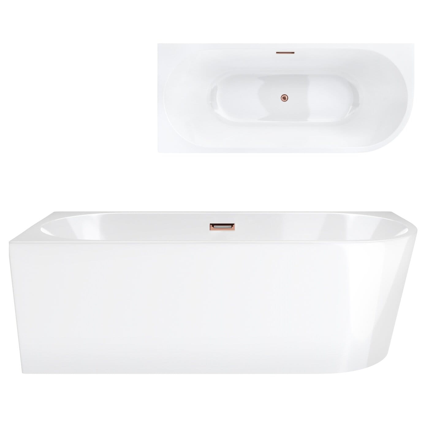 Wanna wolnostojąca narożna Corsan INTERO 160 x 75 Montaż lewostronny Korek klik-klak Miedziany / Różowe Złoto