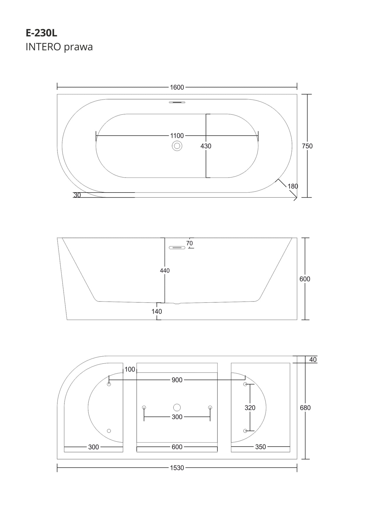 Wanna wolnostojąca narożna Corsan INTERO 160 x 75 Montaż prawostronny Korek klik-klak Złoty