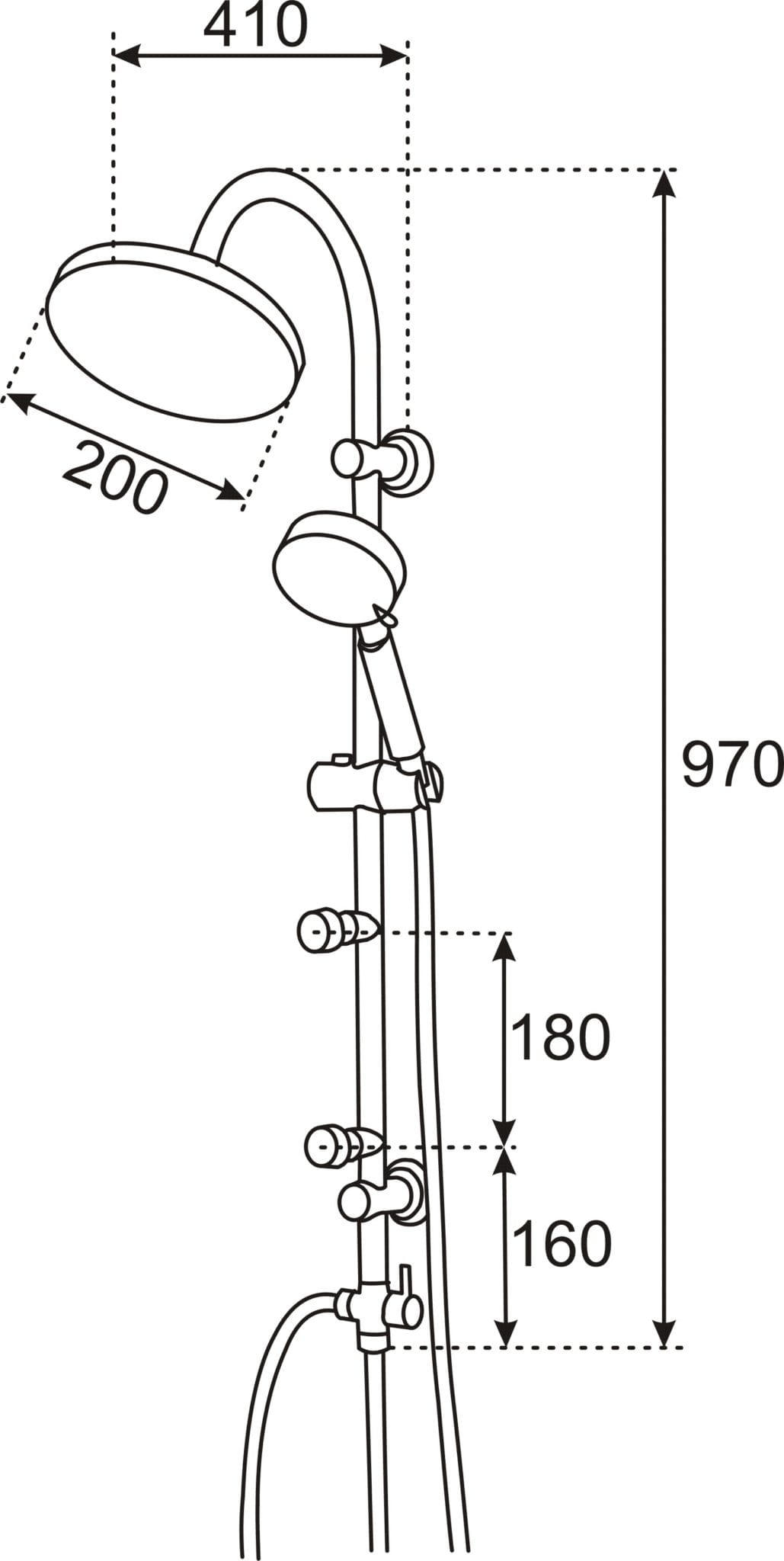 • Dwie ruchome dysze z hydromasażem znajdujące się na drążku z możliwością zamknięcia dopływu